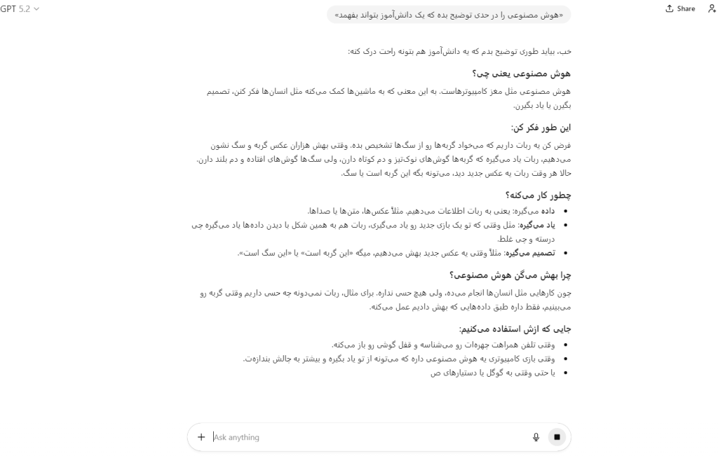 «هوش مصنوعی را در حدی توضیح بده که یک دانشآموز بتواند بفهمد»